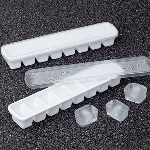 If you’ve got a pint size freezer in an RV, dorm room, home bar, or at the office, you know regular ice cube trays take up too much space or don’t fit at all. Not these! Set of 2 trays each make 8 ice cubes. Clear plastic lids let you fill and stack units. Each is 10 3/4”L x 1 1/2”H.
